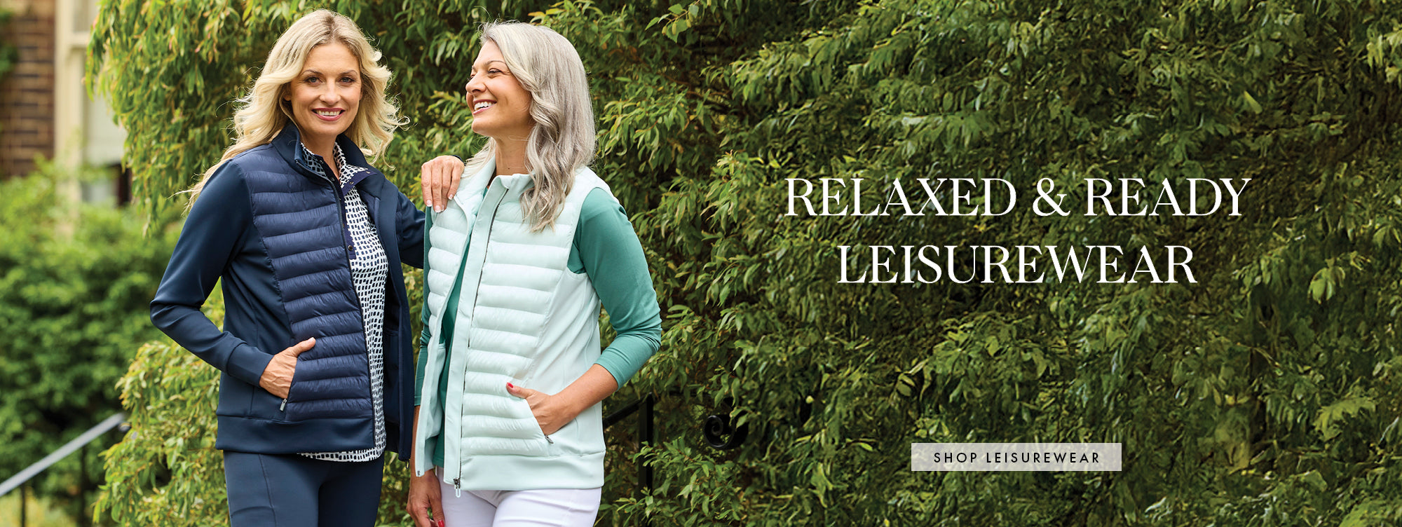 For those days when comfort is key, our leisurewear range offers stylish yet relaxed options like pull on pants, windcheaters, zip-up vests and jackets.