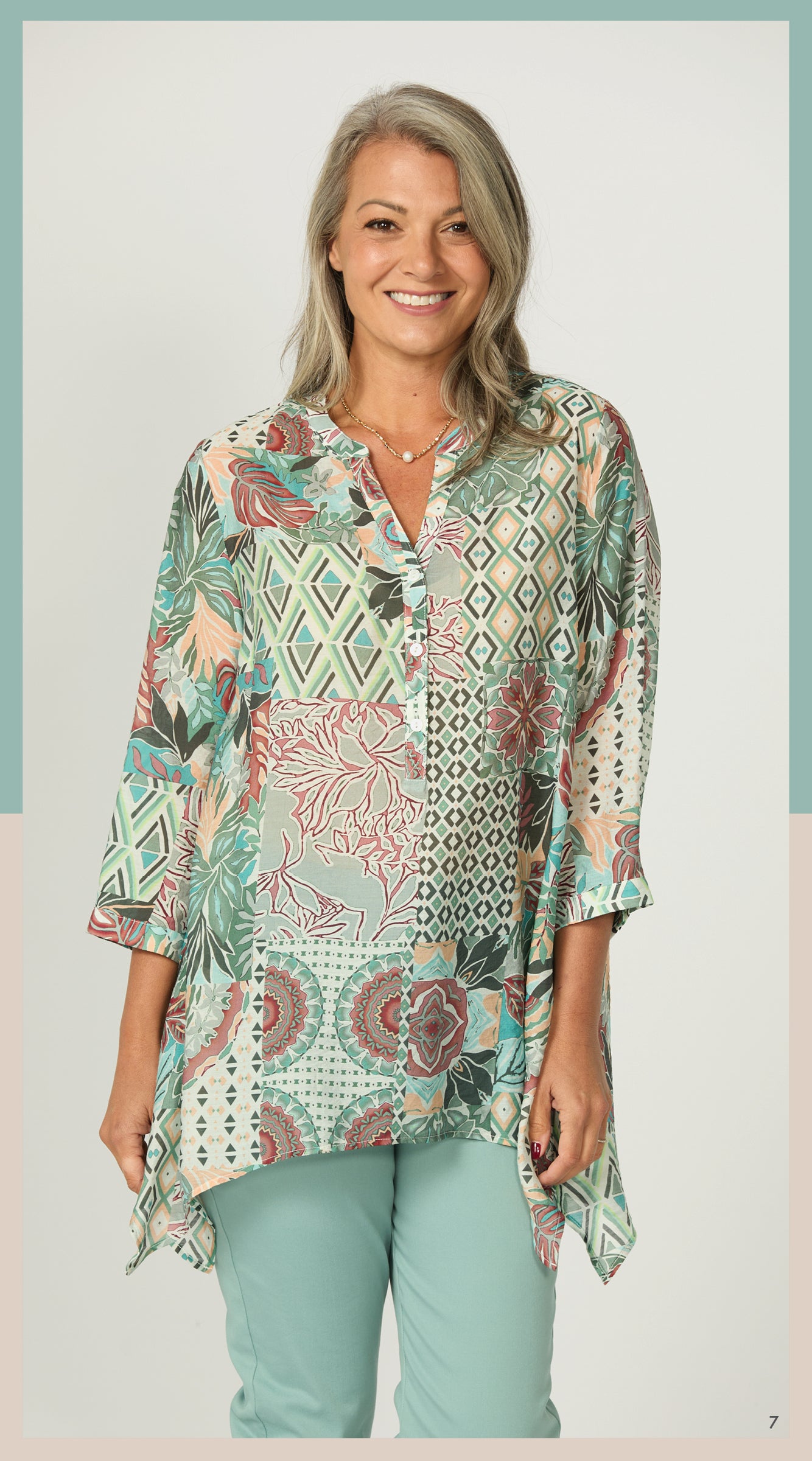Zac 3/4 Sleeve Sharkbite Blouse