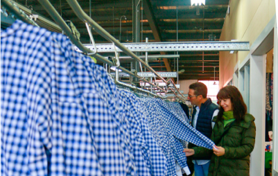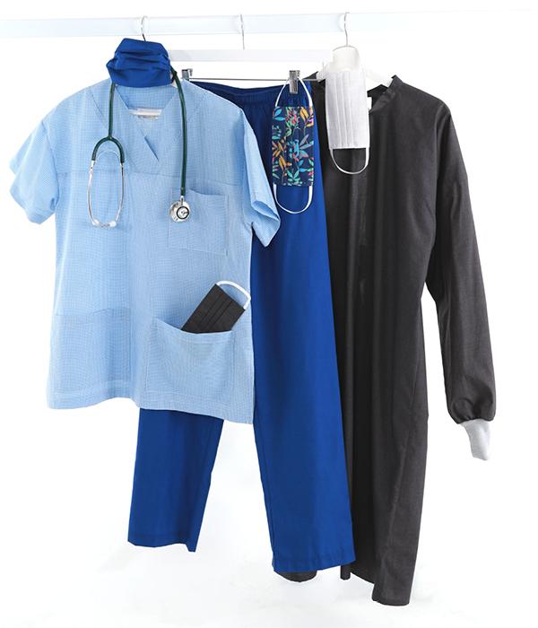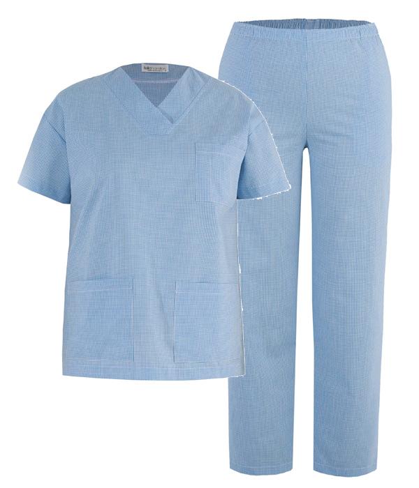 Models Sharon and David Hamilton wearing scrub tops and scrub pants
