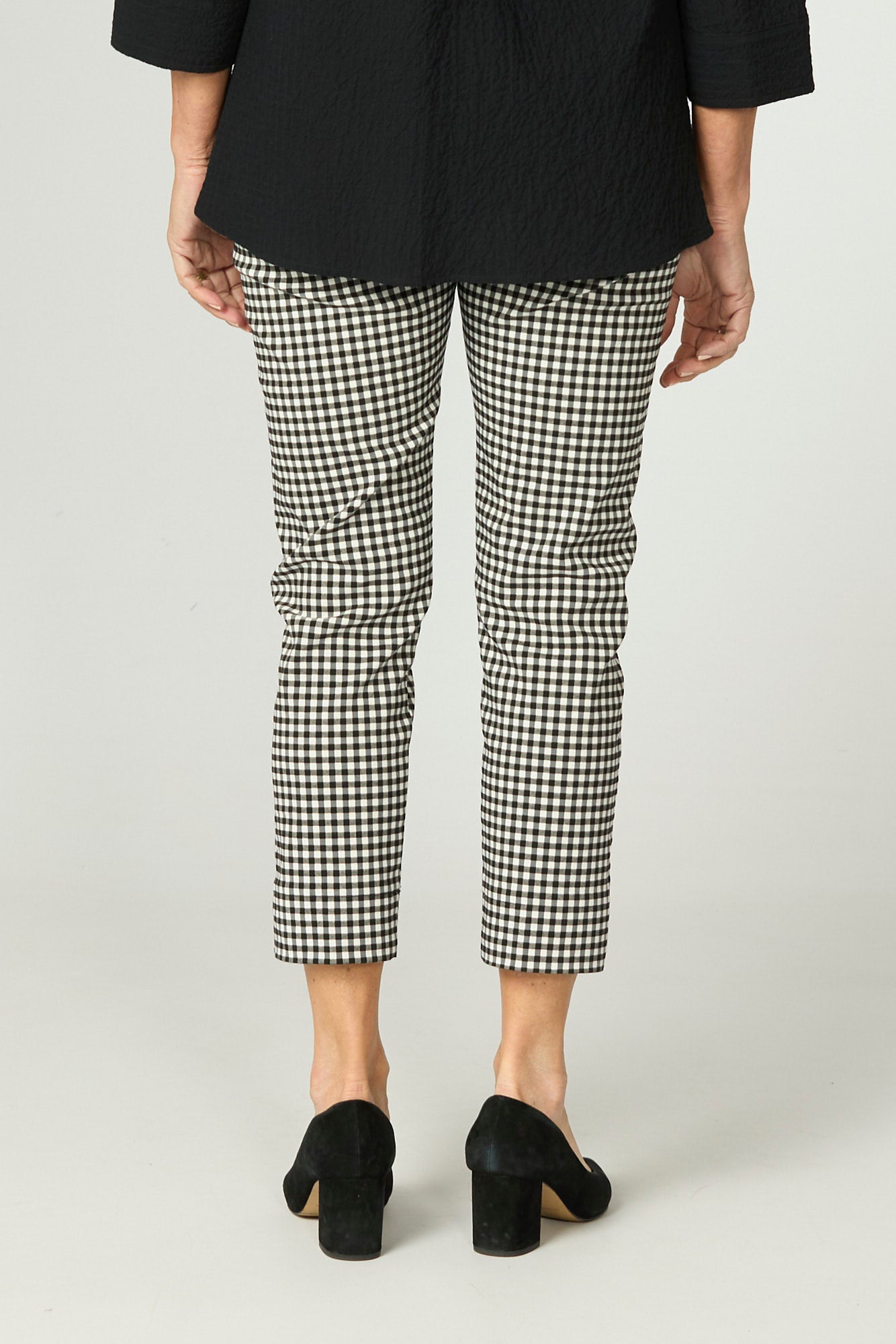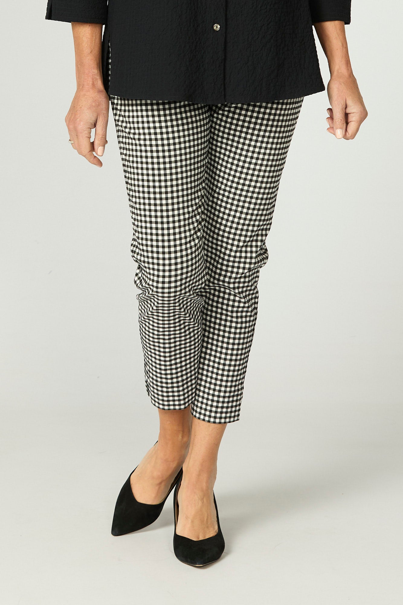 Step into timeless style with the Bayside Check 7/8 Basque Pant in Black/White. Featuring a classic check print and a flattering straight leg cut, these pants offer a chic yet effortless look. The stretch woven fabric ensures comfort throughout the day, while side hem splits add a subtle modern touch. Perfect for dressing up or down with ease.