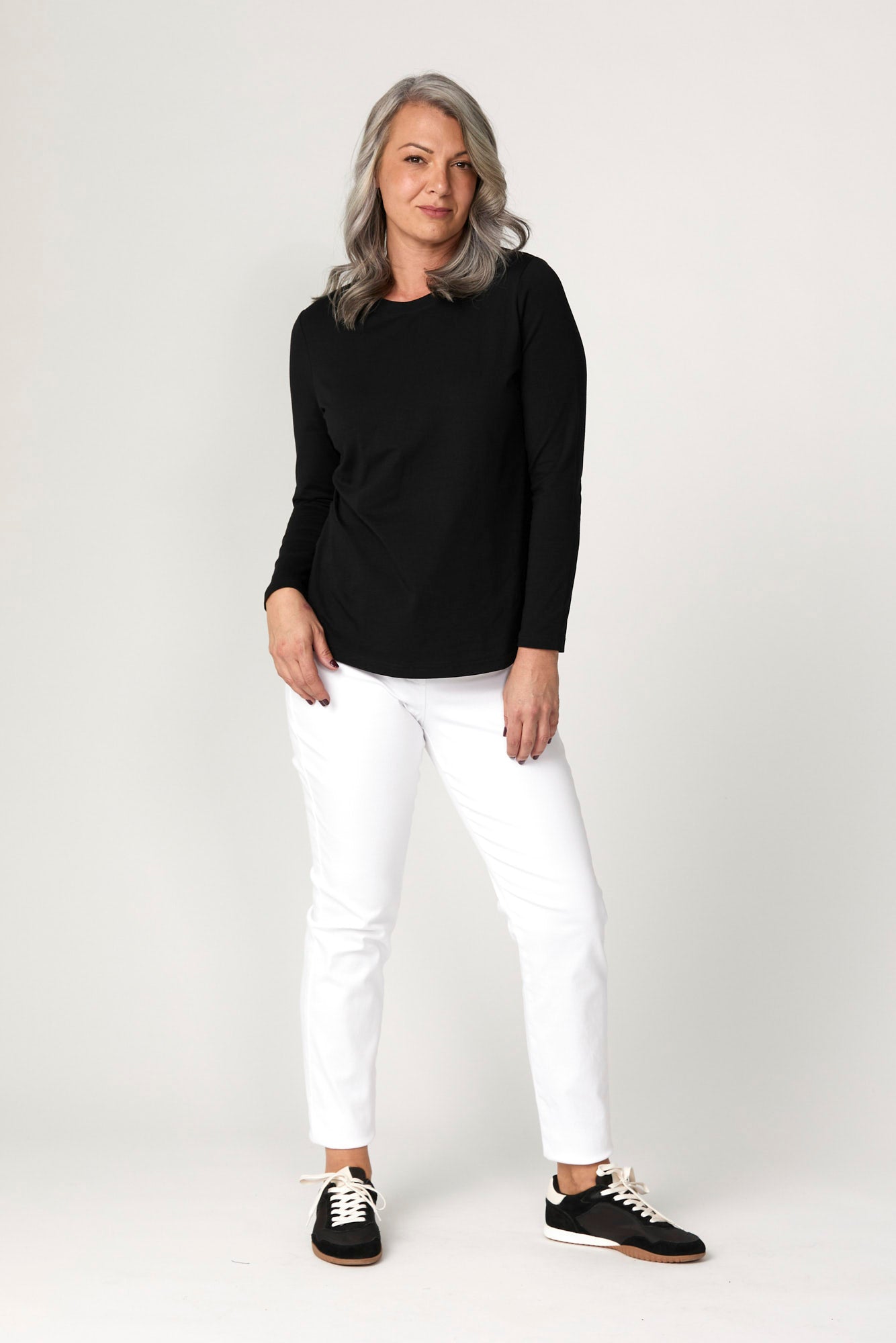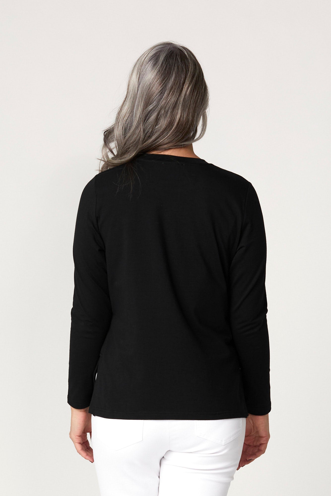 Elevate your essentials with the Baz Side Split Long Sleeve Top in Black. With a clean round neckline and subtle side hem detailing, this top is a versatile layering piece for effortless everyday wear. The soft finish and set-in sleeves add structure to its relaxed silhouette, making it both comfortable and polished.