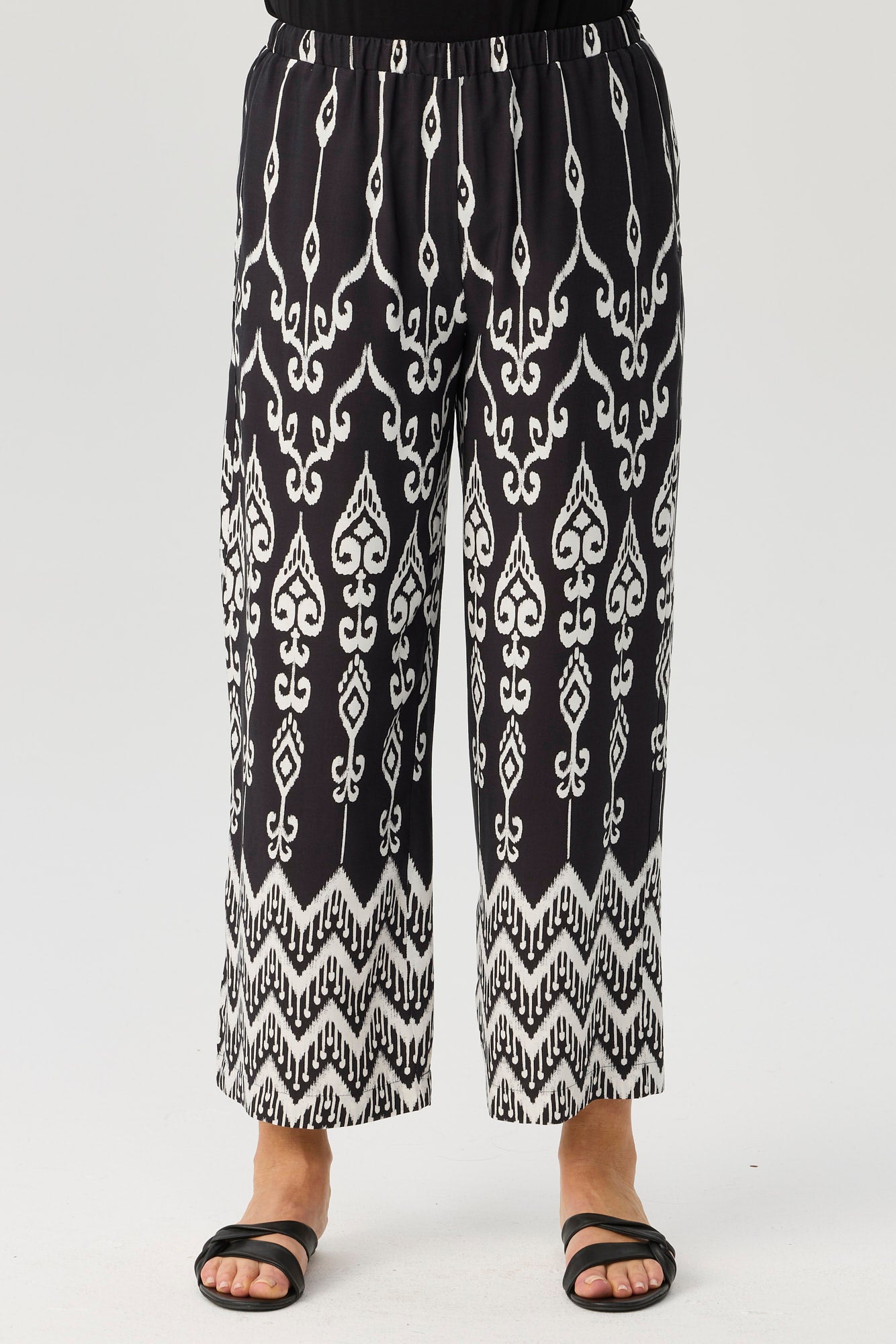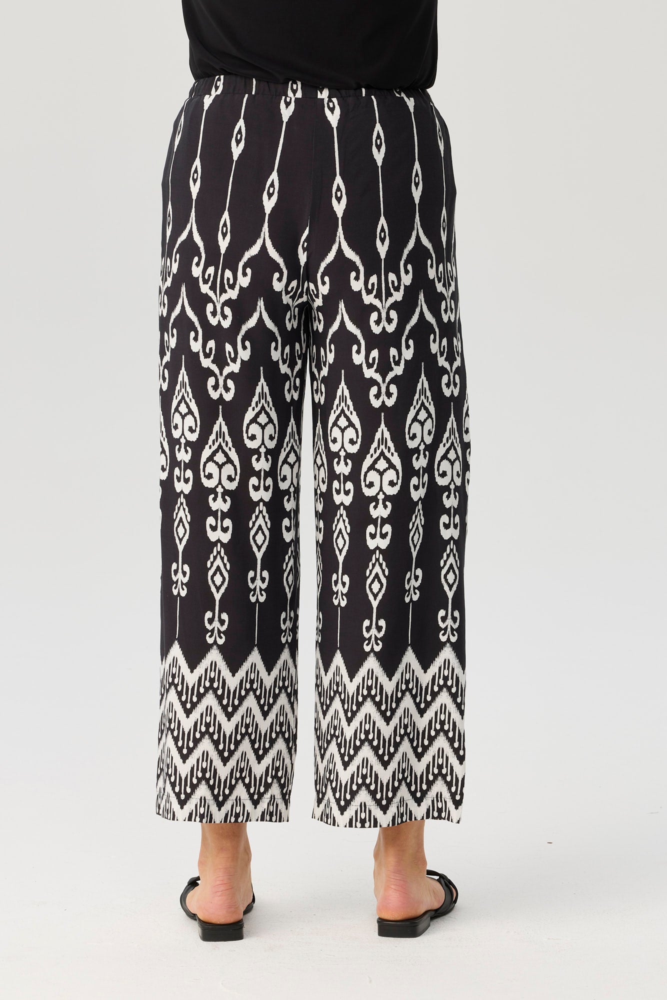 Refresh your wardrobe with the Billi Border Pant in Black and Ivory, a chic expression of ikat-inspired style. Made in Australia, these wide-leg pants feature a striking border print and a soft, lightweight fabrication perfect for breezy comfort. The elasticated waistband and functional side pockets ensure ease and versatility for everyday wear.