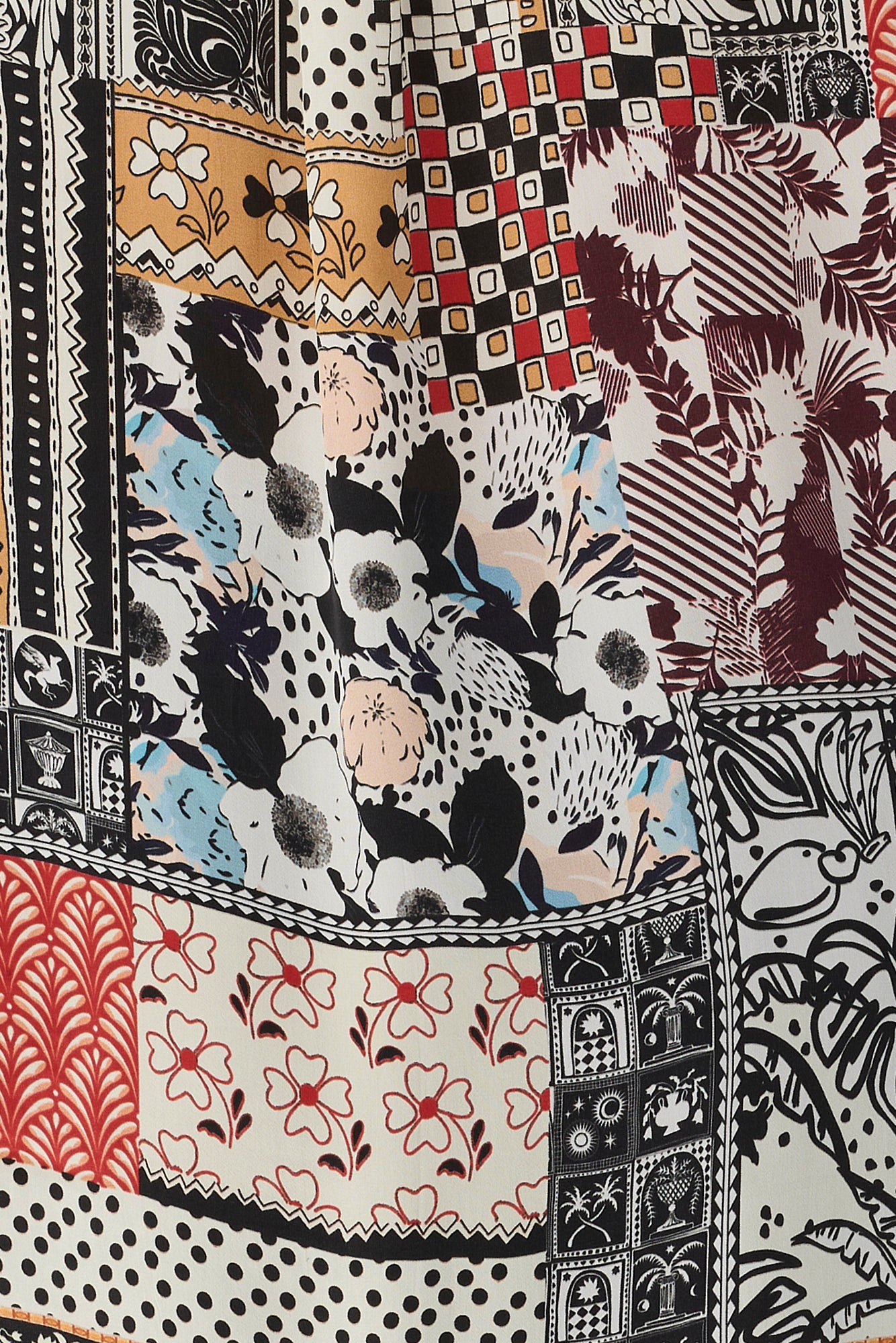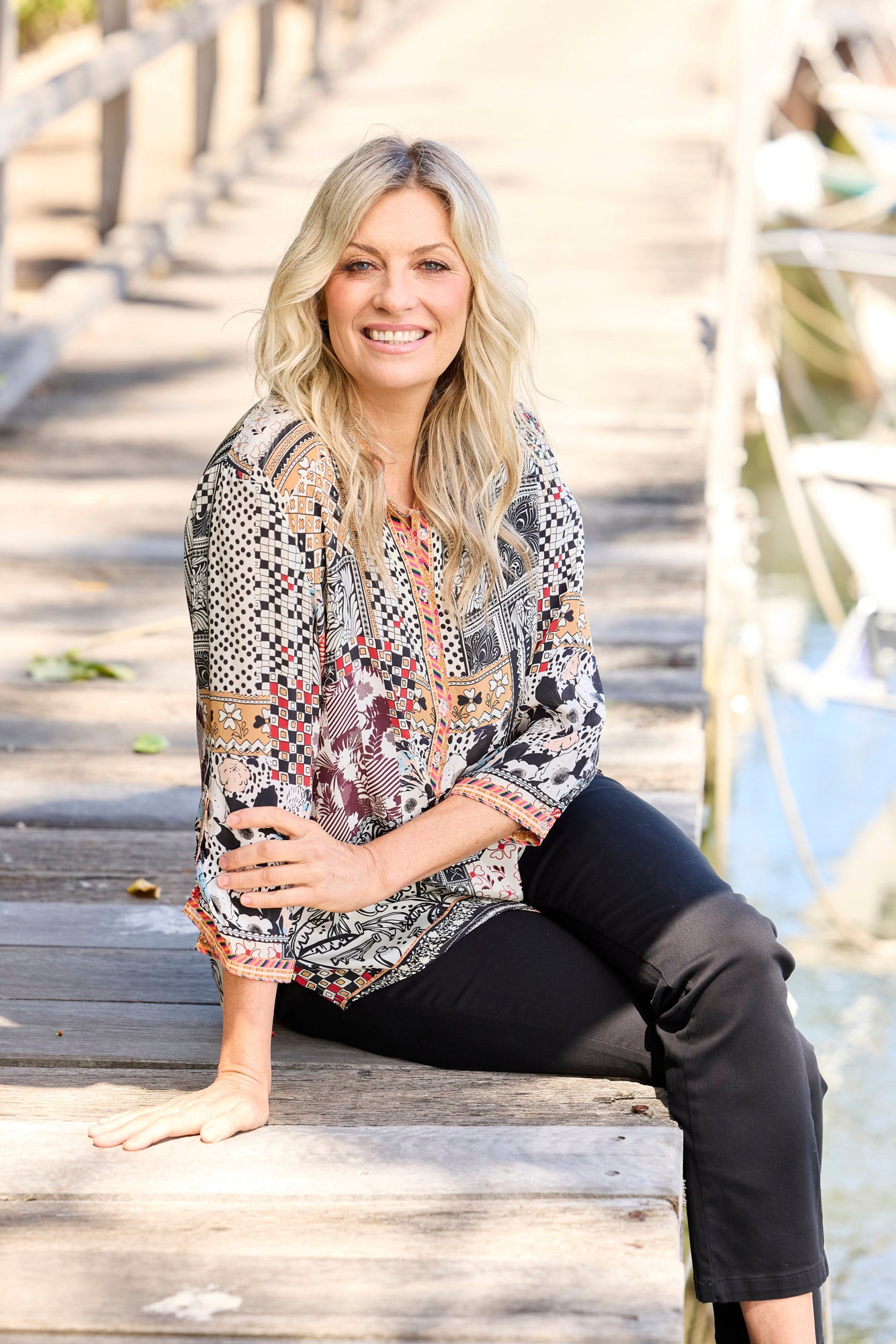 Turn heads in the Blackjack 3/4 Sleeve Collared Blouse in Red/Black. Featuring a striking multi patchwork print, this blouse brings bold personality to a lightweight, floaty silhouette. The contrast border hem and side splits add movement and flair, while the elasticated waist ensures all-day comfort and ease.