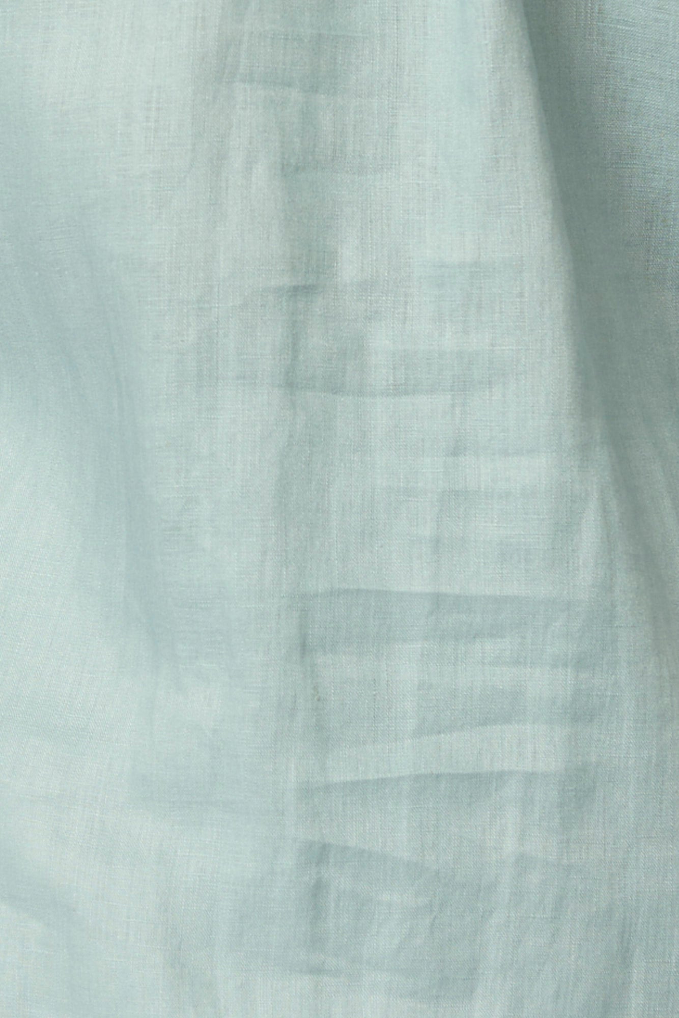 Step into relaxed elegance with the Caledonia Collarless 3/4 Sleeve Shirt in Mediterannean. Made in Australia from luxe 100% linen, this breathable piece offers a refined silhouette with thoughtful detailing. The round neckline flows into a subtle V-insert and button-down placket, while its curved hem and cuffed sleeves add structure to its easy, relaxed fit—perfect for warm days or smart-casual layering.