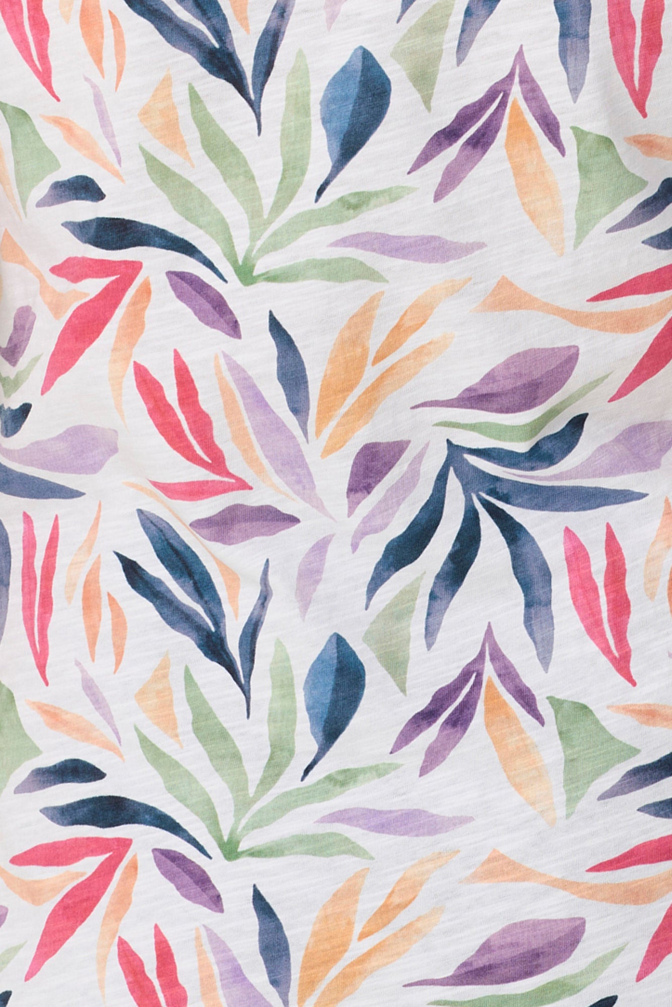 Step into playful sophistication with the Cassidy Elbow Sleeve Top in Multi Leaves. This tee brings a painterly charm to your wardrobe with its vibrant floral leaf print. The soft round neckline and short sleeves provide all-day comfort, while the artistic design adds a fresh pop of colour to any outfit.