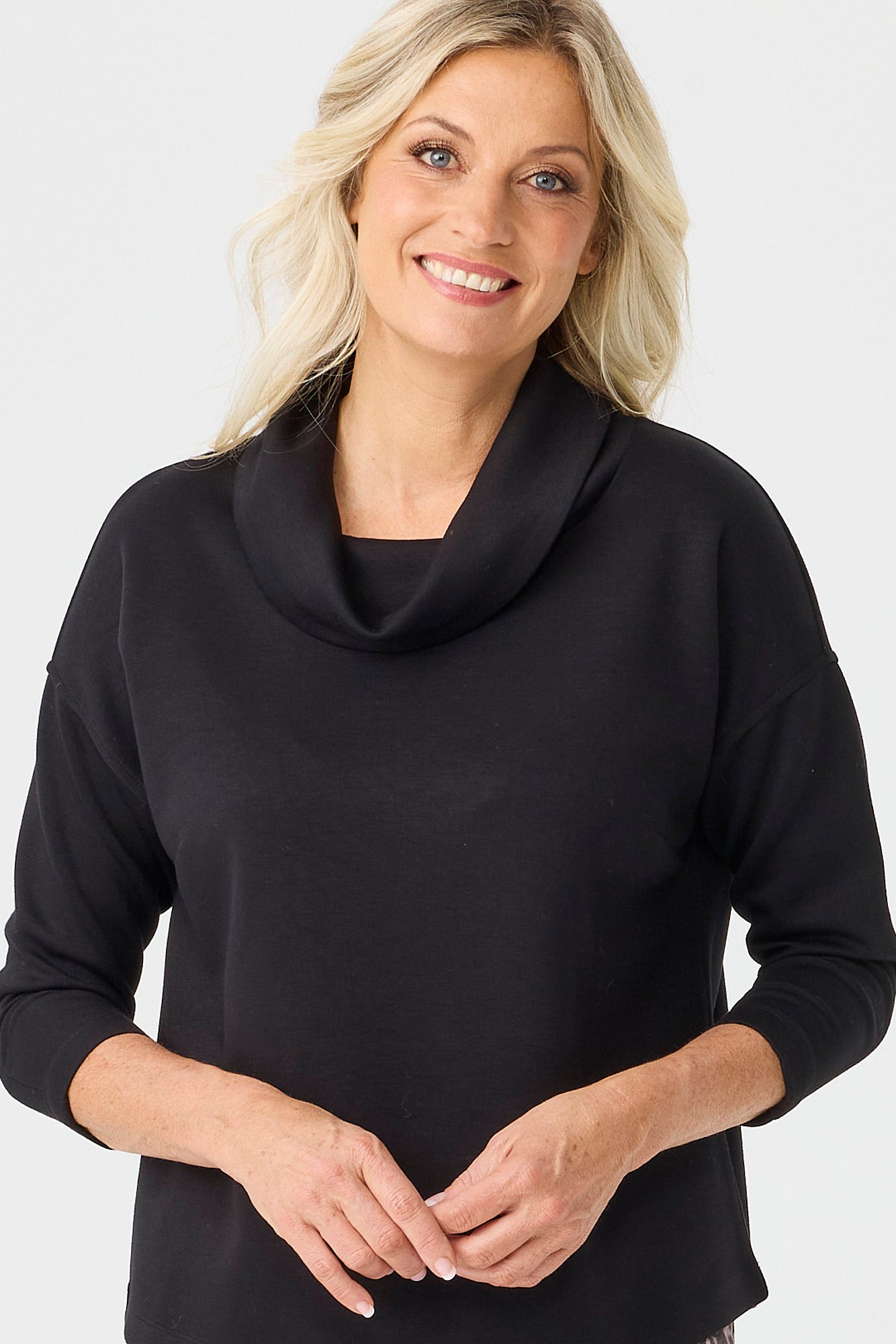 The Charisma Cowl Neck Top in Black is a top that delivers all-day comfort for daily routines. The fabric feels soft, keeping the top comfortable against the skin during long wear. Drop shoulders soften the upper line and add extra ease through the arms for a relaxed feel. Long sleeves add extra coverage and make the piece useful when the weather turns cooler.
