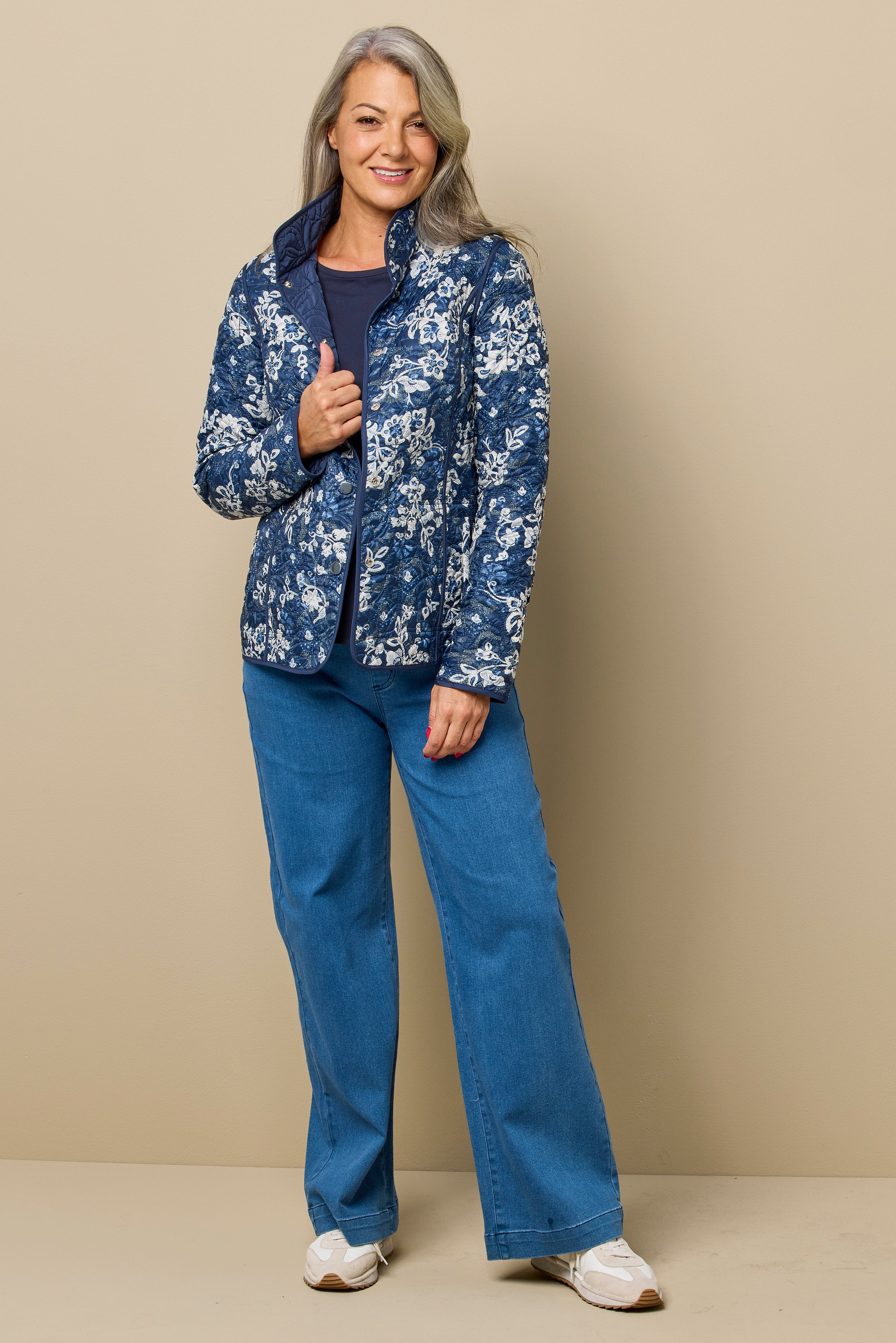 The Dante Reversible Print Jacket in Navy/Ecru Mix is a jacket that delivers all-day comfort for cooler-weather layering. A collared neckline adds a clean, structured finish and keeps the upper line neat. Long sleeves add extra coverage and make the piece useful when the weather turns cooler. The print detail adds visual interest while keeping the overall shape easy to style.
