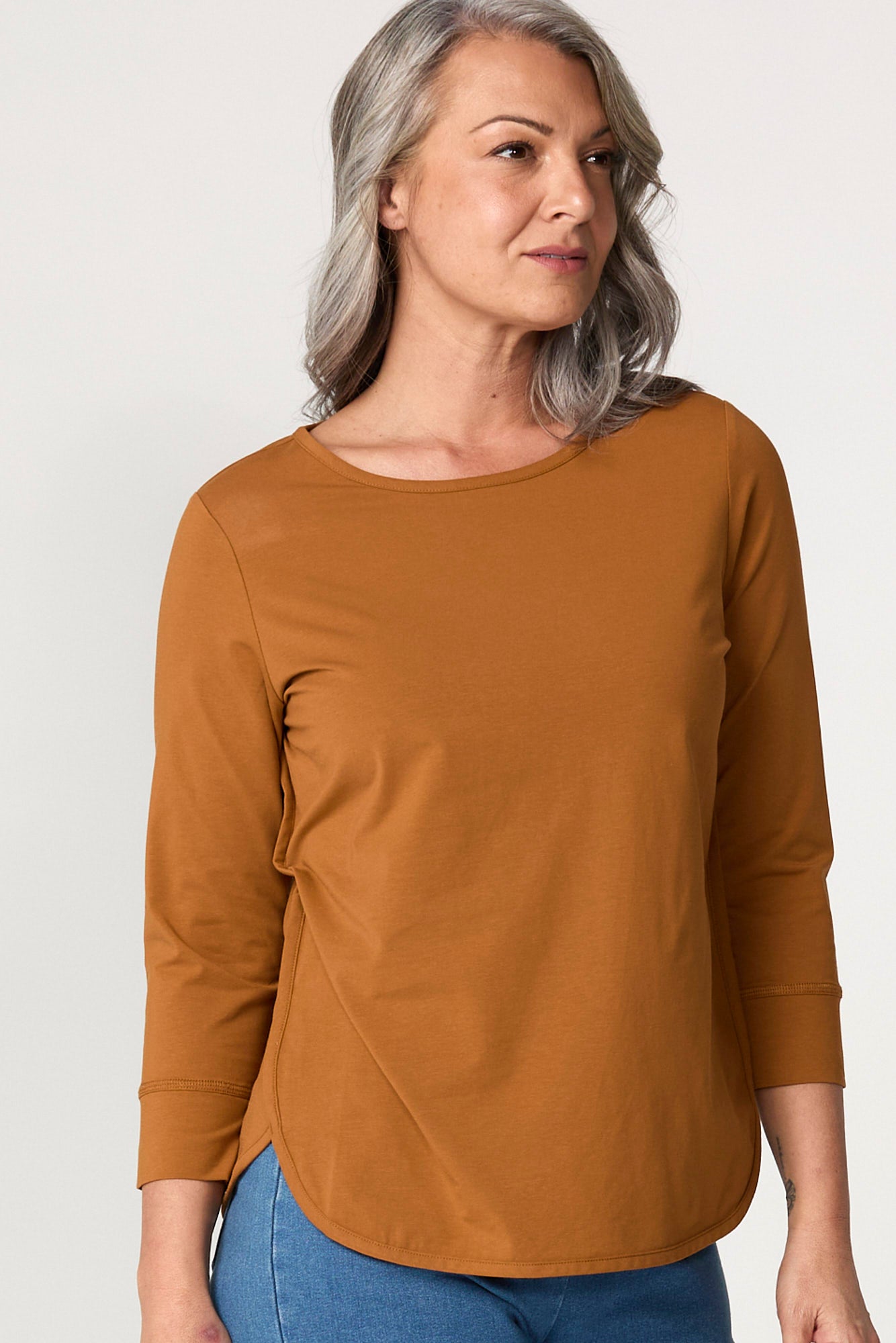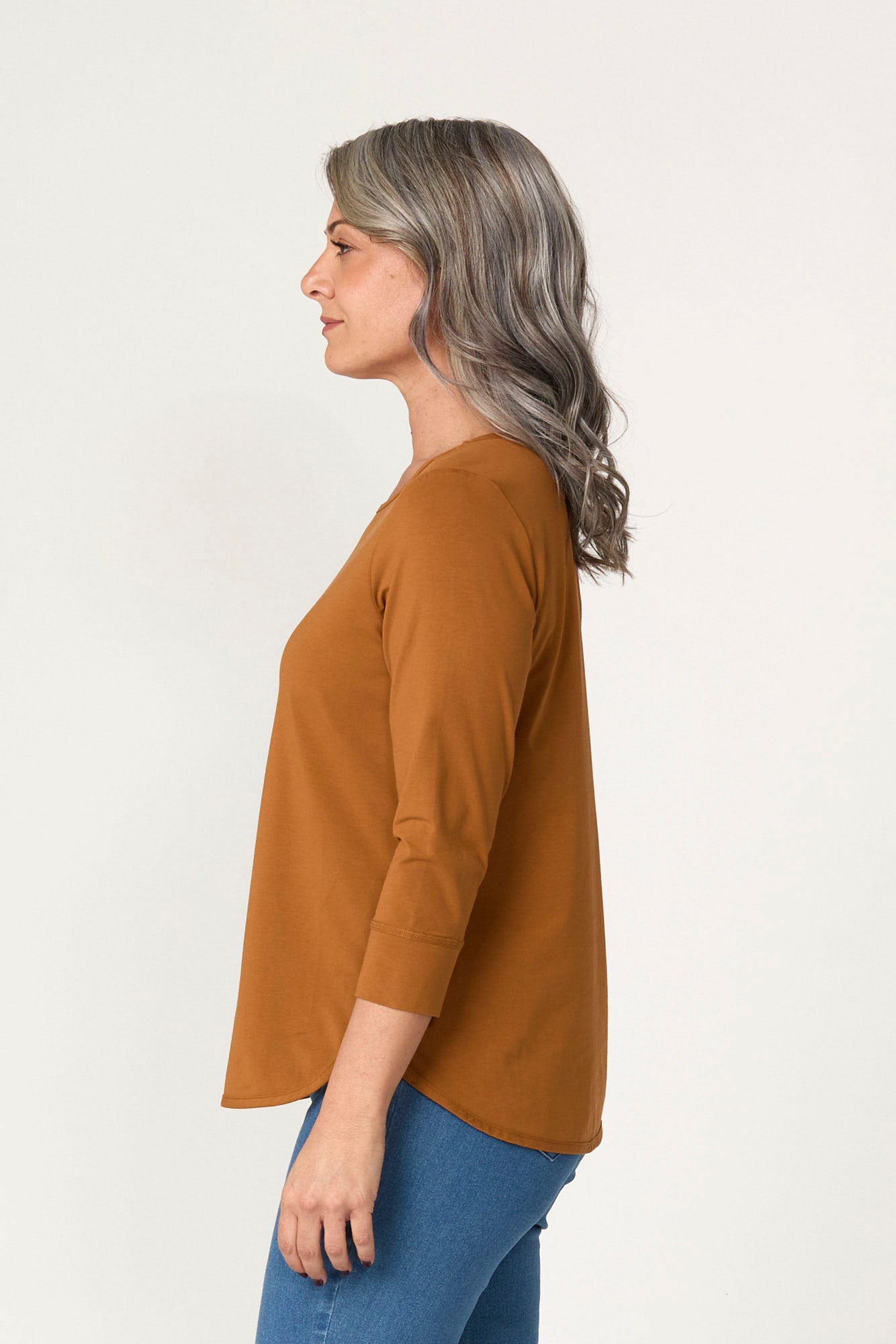 The Eternity Modal/cotton 3/4 Sleeve Top is a top that delivers easy movement and comfort for daily routines. Modal and cotton fabric keeps the top comfortable against the skin and suited to long wear without feeling heavy. The round neckline offers clean coverage at the front and keeps the upper line simple for layering. 3/4 sleeves give coverage without feeling heavy, working well when you want a lighter sleeve length.