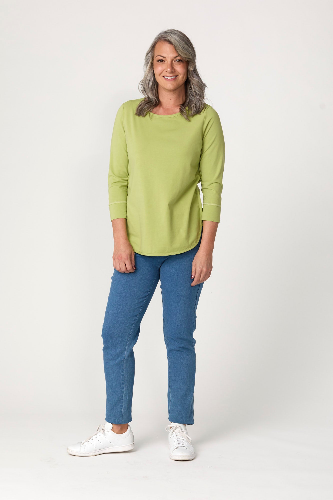 The Eternity Modal/cotton 3/4 Sleeve Top is a top that delivers easy movement and comfort for daily routines. Modal and cotton fabric keeps the top comfortable against the skin and suited to long wear without feeling heavy. The round neckline offers clean coverage at the front and keeps the upper line simple for layering. 3/4 sleeves give coverage without feeling heavy, working well when you want a lighter sleeve length.