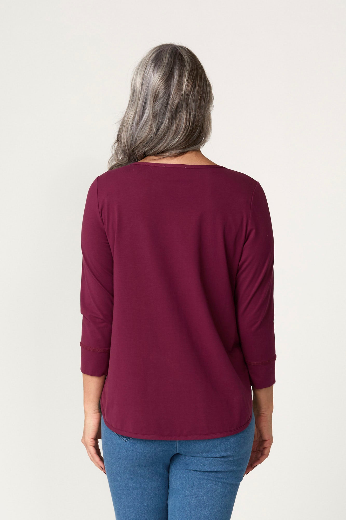 The Eternity Modal/cotton 3/4 Sleeve Top is a top that delivers easy movement and comfort for daily routines. Modal and cotton fabric keeps the top comfortable against the skin and suited to long wear without feeling heavy. The round neckline offers clean coverage at the front and keeps the upper line simple for layering. 3/4 sleeves give coverage without feeling heavy, working well when you want a lighter sleeve length.