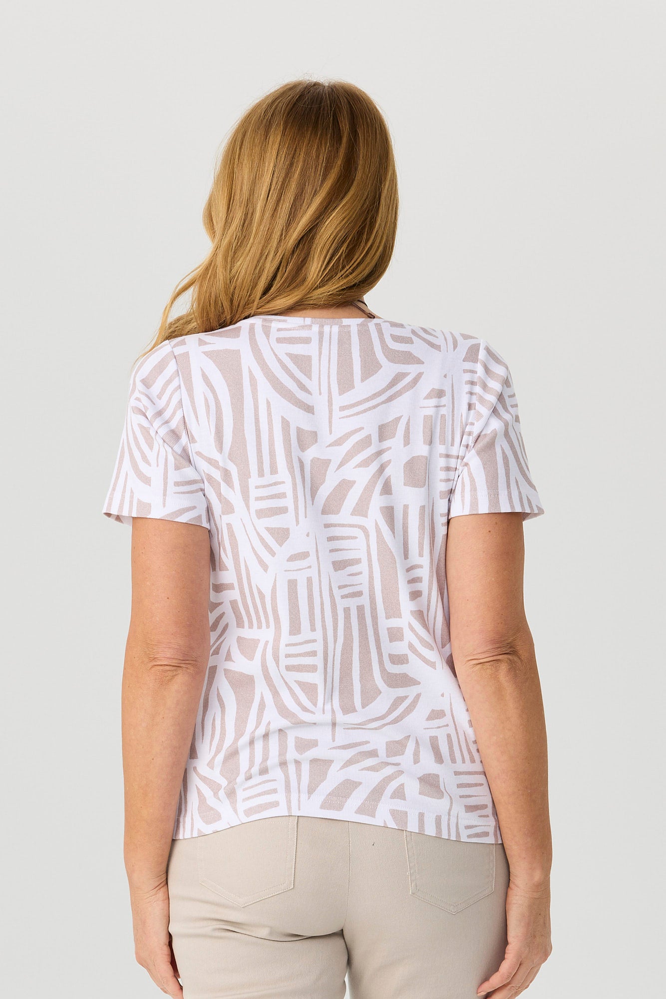 Bring subtle sophistication to your casual wardrobe with the Express S/S Print Tee in Taupe. Designed with an eye-catching abstract two-colour print, this tee offers an easy fit and timeless appeal. Crafted from soft cotton with a touch of stretch, it features a round neckline with self-bind, side splits at the hem, and short set-in sleeves for all-day comfort and movement.