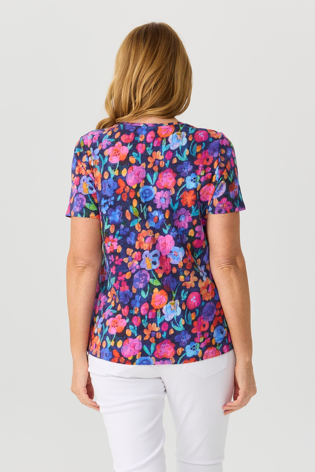 Brighten your everyday wardrobe with the Kent Short Sleeve Print Tee in Coventry Floral. Bursting with colour, this floral printed tee adds a cheerful touch to any casual outfit. Designed with a classic round neckline and set-in short sleeves, it delivers both comfort and charm with ease.