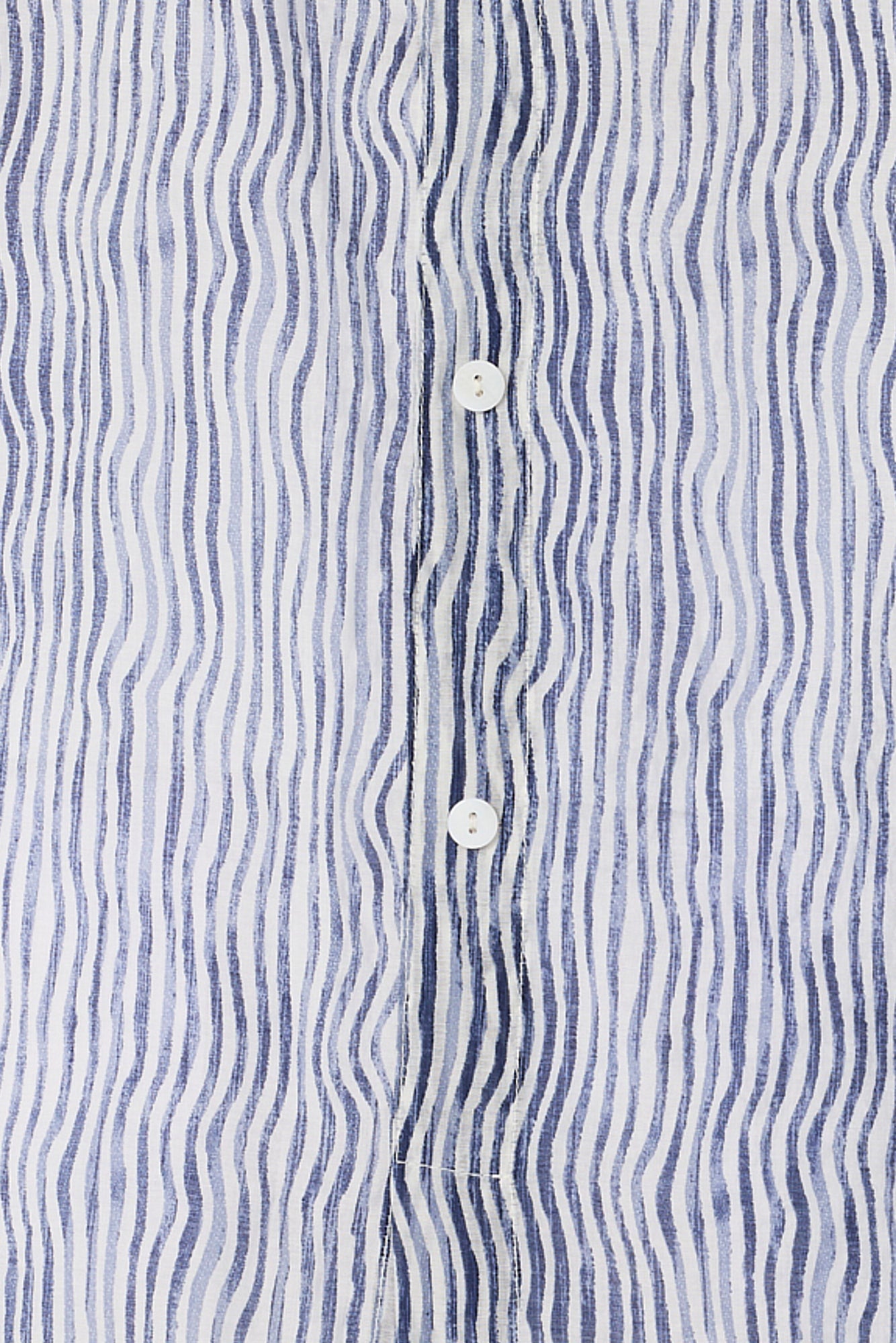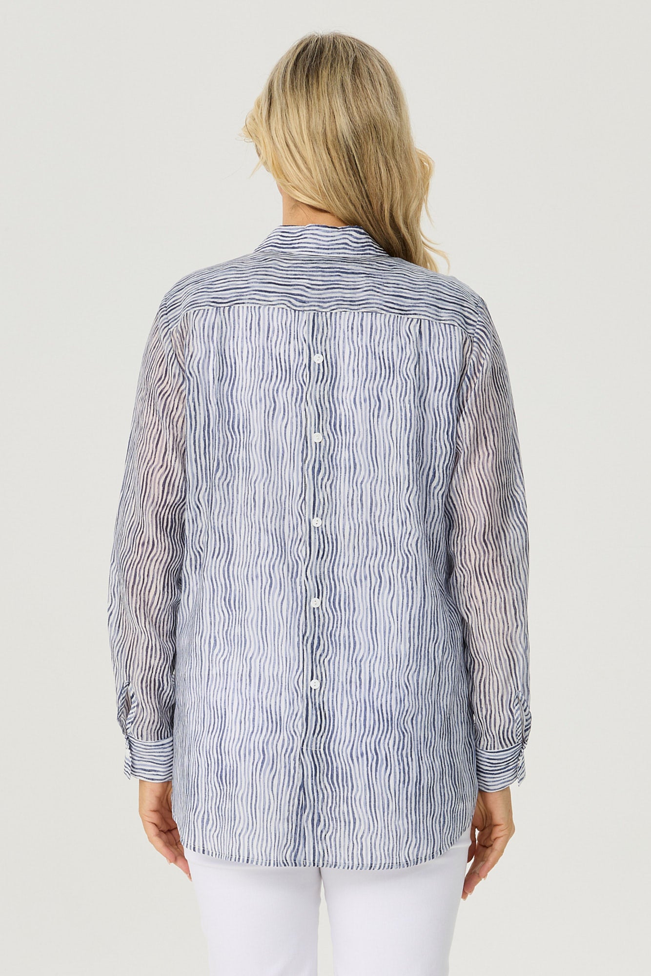 Refresh your everyday classics with the Wavy Stripe 3/4 Sleeve Shirt in Navy Stripe. Showcasing a unique wavy print, this shirt blends contemporary charm with timeless tailoring. With thoughtful seam detailing and a flattering curved hem, it’s a versatile option for smart-casual dressing.